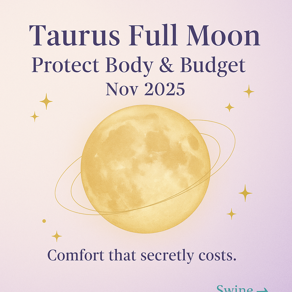 The Taurus full moon November 2025 is a stabilizer, not a crisis. It asks for one honest look at comfort that secretly costs in your budget, your boundaries, and your body. On Nov 5, clarity lands: a subscription, habit, or dynamic you’ve been tolerating shows its real price tag. Trim one leak, name one boundary, and anchor in a simple full moon ritual (November 2025) so the change feels steady, not severe.